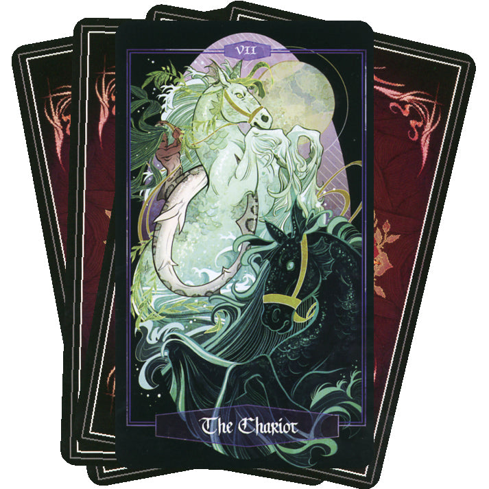 A richly illustrated tarot deck by Alexandria Huntington featuring mythological creatures and nature based symbolism. Each of these cards has been lovingly and painstakingly hand illustrated specifically for Tarot. Each card is a product of specialized mediation, manifestation, and magick. The deck includes 80 cards, 78 are re-imaginings of the traditional Rider-Waite Tarot and the 2 additional “bonus” cards of original design: “The All” and “The Void”. This brings the deck to a round 80, which in numerology is considered the number of destiny.
